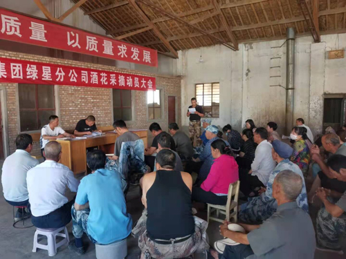 8月8日绿星分公司、鑫源公司相继组织全体干部职工召开了2021年啤酒花采摘加工动员大会,大会详细安排了本公司啤酒花采摘烘烤加工工作;与各站、加工厂、采摘机主、各烤楼楼长、副楼长、采摘加工现场主要责任人签订了《岗位管理目标责任书》《产品质量管理目标责任书》《安全管理目标责任书》,为努力完成2021年啤酒花采收烘烤加工工作目标任务奠定了基础。