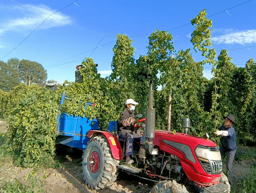 科技创新,激发内生动力。近年来,公司先后投资500多万元实施啤酒花顺流池式烘烤工艺改造项目,实现了啤酒花日加工量提升10%,产品理化指标有效提升0.2%,贮藏指数降低0.03,烘烤用工由原来50个降低到15个左右,确保加工前端高质量原料到终端产品加工质量的把控,完成了节本增效目标。投资2800多万元实施半高架建园改造项目,颠覆传统低平架种植栽培模式,用工由原来25-30个降低至12-15个,亩节省费用600元;配套小型机械化职工平均种植面积由原来8亩增加至30亩,主栽品种有效增产4.9%-9.04%,也使得职工收入翻了一番。投资30多万元自主研发了啤酒花剪蔓机、开穴机、割芽机,亩节约人工费用300元左右,初步实现了半高架机械化作业节本增效生产目标,有效解决了雇工、用工难问题。