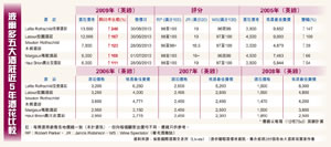 根据伦敦国际酒类交易所(Liv-ex)公布的酒花价格,波尔多五大酒庄中(见表),拉斐升幅最惊人,一箱12枝75cl葡萄酒计算,就要1.35万英镑(约16万港元),较05年高2.5倍、08年的8.5倍。
