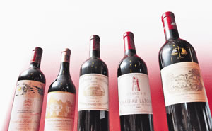 09年波尔多酒花,较05年贵1至2.5倍,图为五大酒庄的2005年葡萄酒。